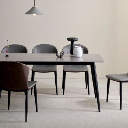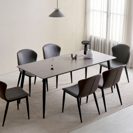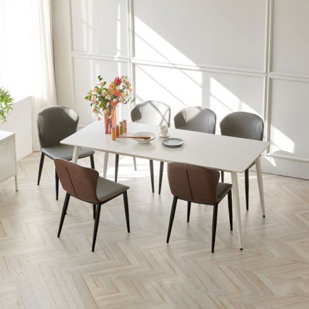 자모네 보노바 네트 4인용 포세린 세라믹 식탁 세트 화이트상판 화이트다리 다크그레이의자4개